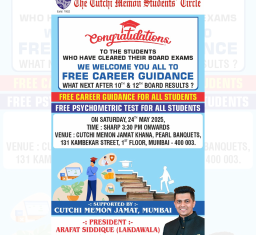 Venue: Cutchi Memon Jamat Khana, Kambekar Street, Mumbai – 400003