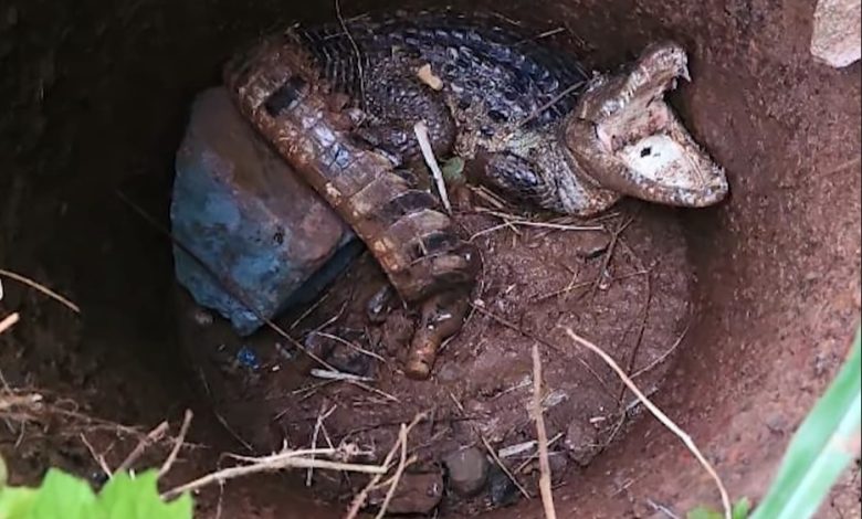 Mumbai City Me Powai Ke Saki Vihar Road Par Morarji Nagar Ke Pass Bane 5 Ft Gehri Khadde Me Ek Bada Crocodile Dira Hua Dikhayi Diya