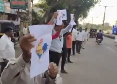 “Kombdi Chor” Ke Naare Lagaakar, Murgi Ka Photo Dikhaya Gaya BJP Minister Nitesh Rane Ko At Solapur